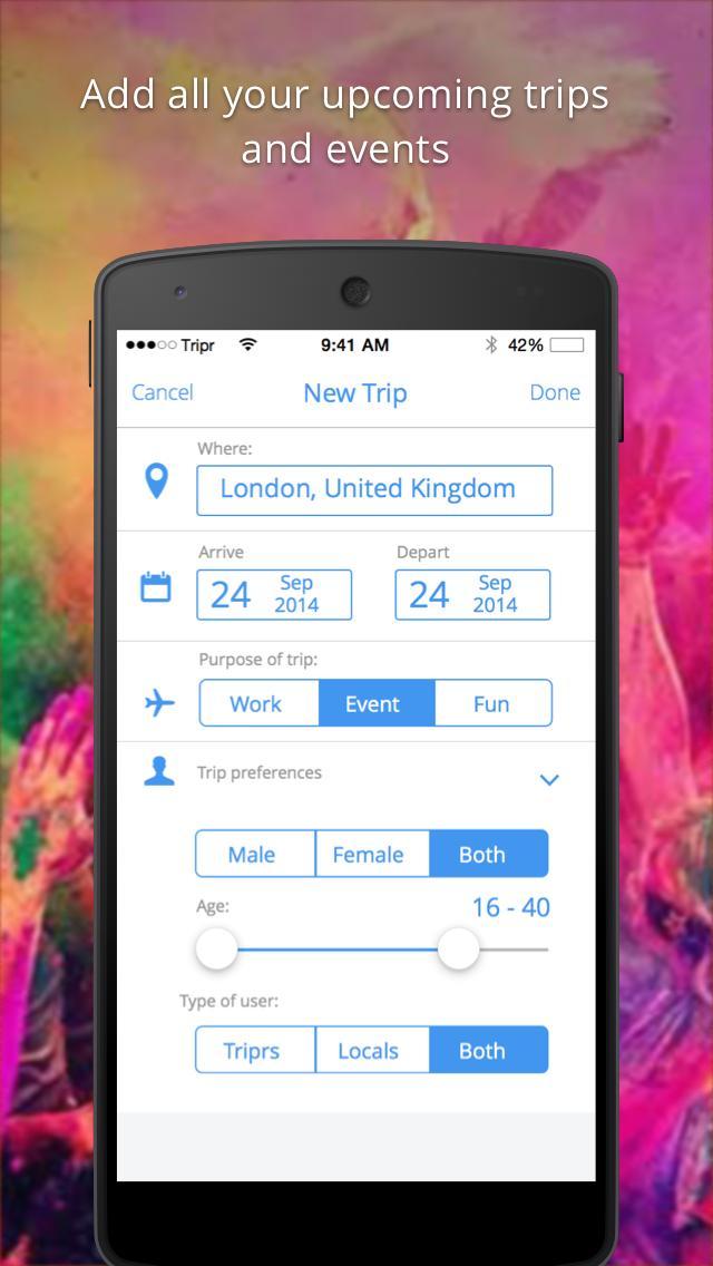 Tripr 동시에 같은 장소에있을 사람들을 연결합니다.